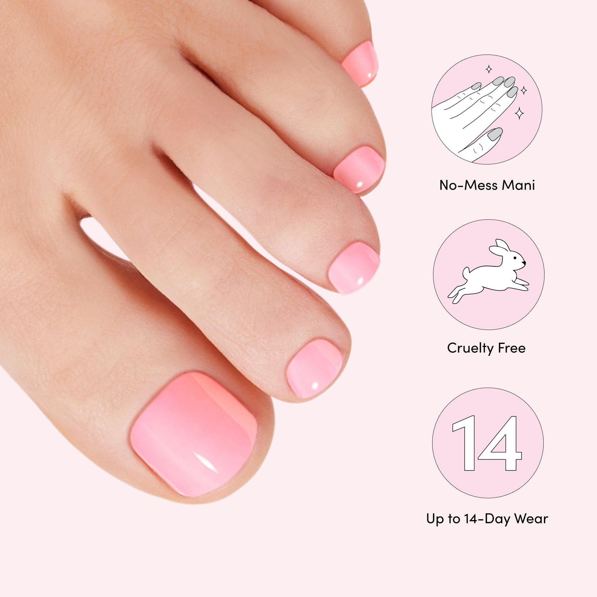 Semi-cured neon candy pink gel pedicure strips with mega volume and maximum shine.