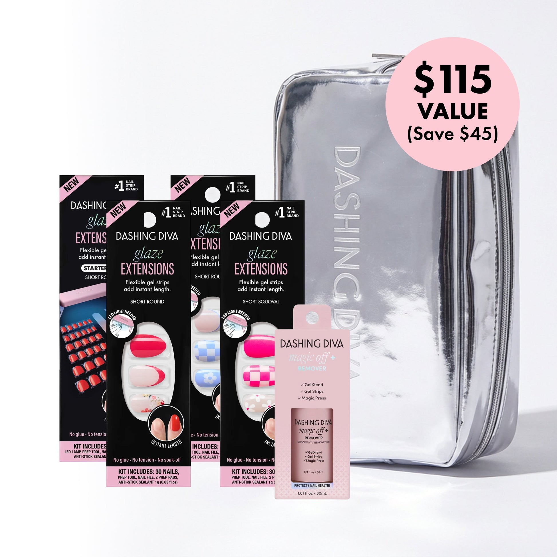 Glaze Extensions are the next-gen soft-gel nail strips that flex to your nail shape and cure under LED light (sold separately or in Starter Kit) for instant length, flawless contour, extreme comfort, and builder gel strength—all without the glue, filing, or soak-off removal.