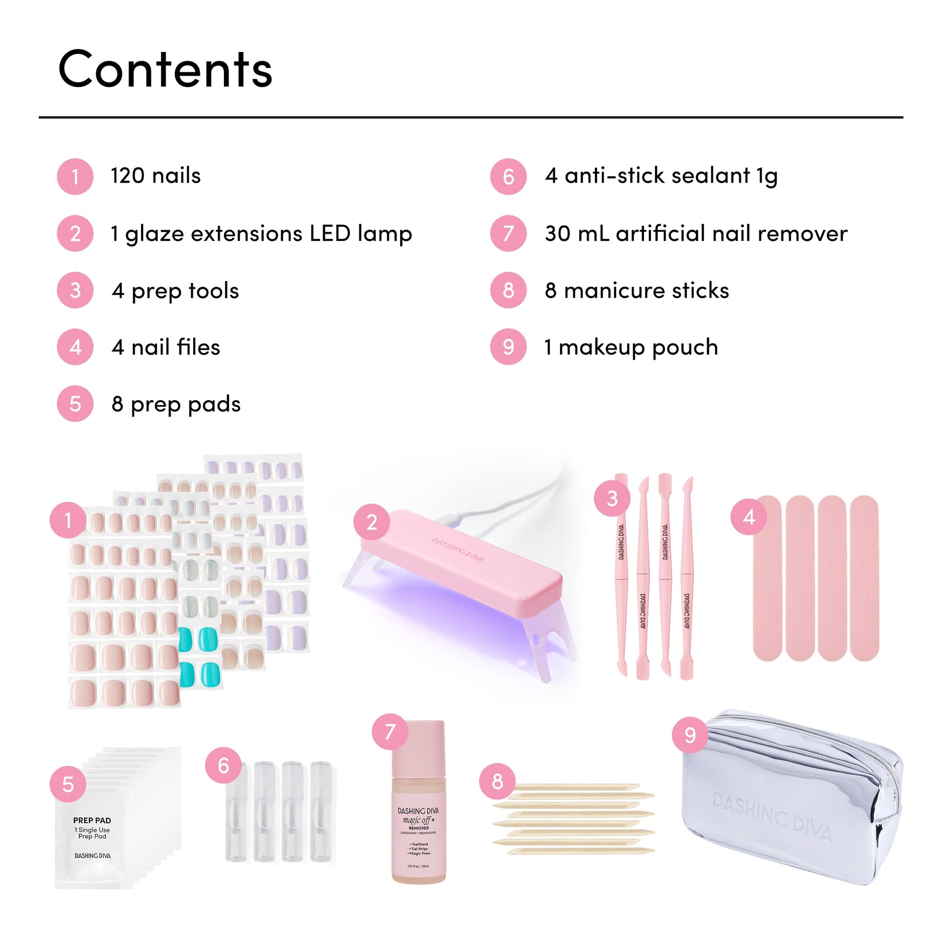 Glaze Extensions are the next-gen soft-gel nail strips that flex to your nail shape and cure under LED light (sold separately or in Starter Kit) for instant length, flawless contour, extreme comfort, and builder gel strength—all without the glue, filing, or soak-off removal.