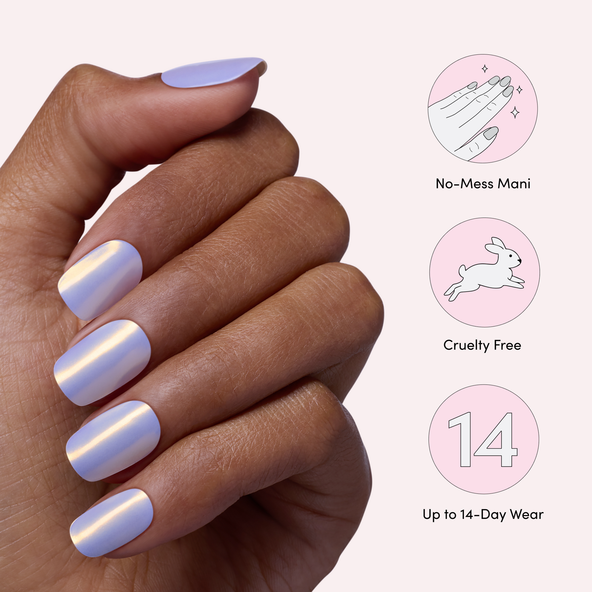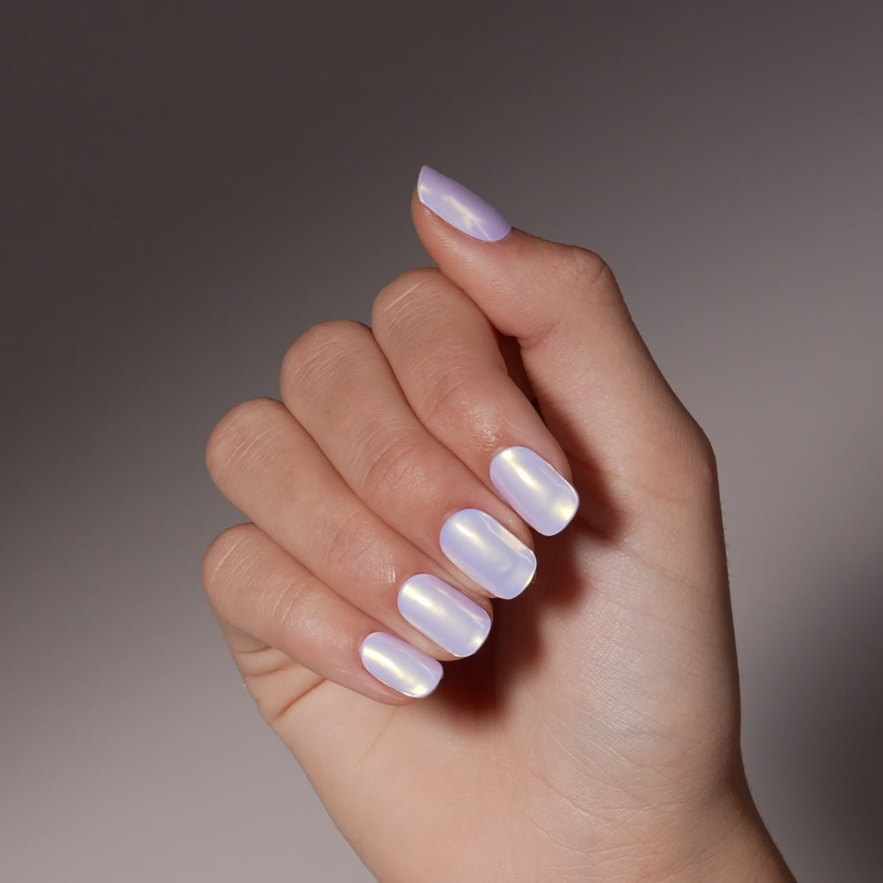 A full set of icy purple holographic effects in a natural squoval shape.
