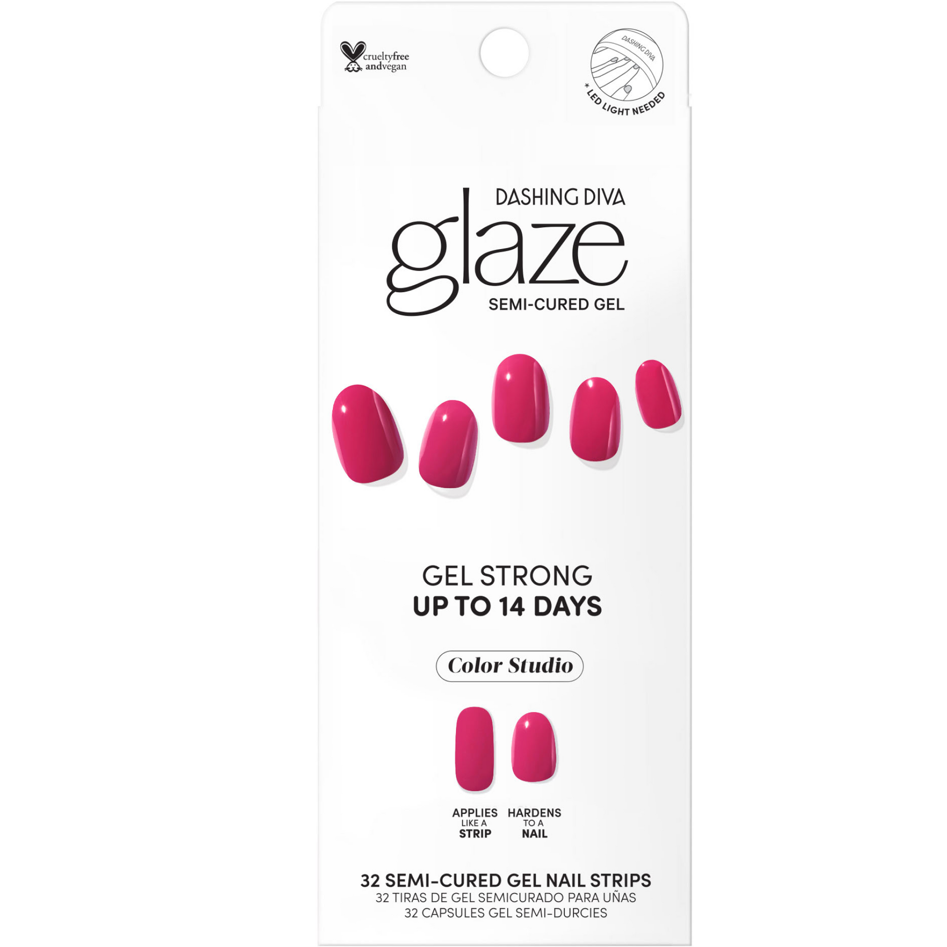 Semi-cured raspberry pink gel nail strips with mega volume and maximum shine.