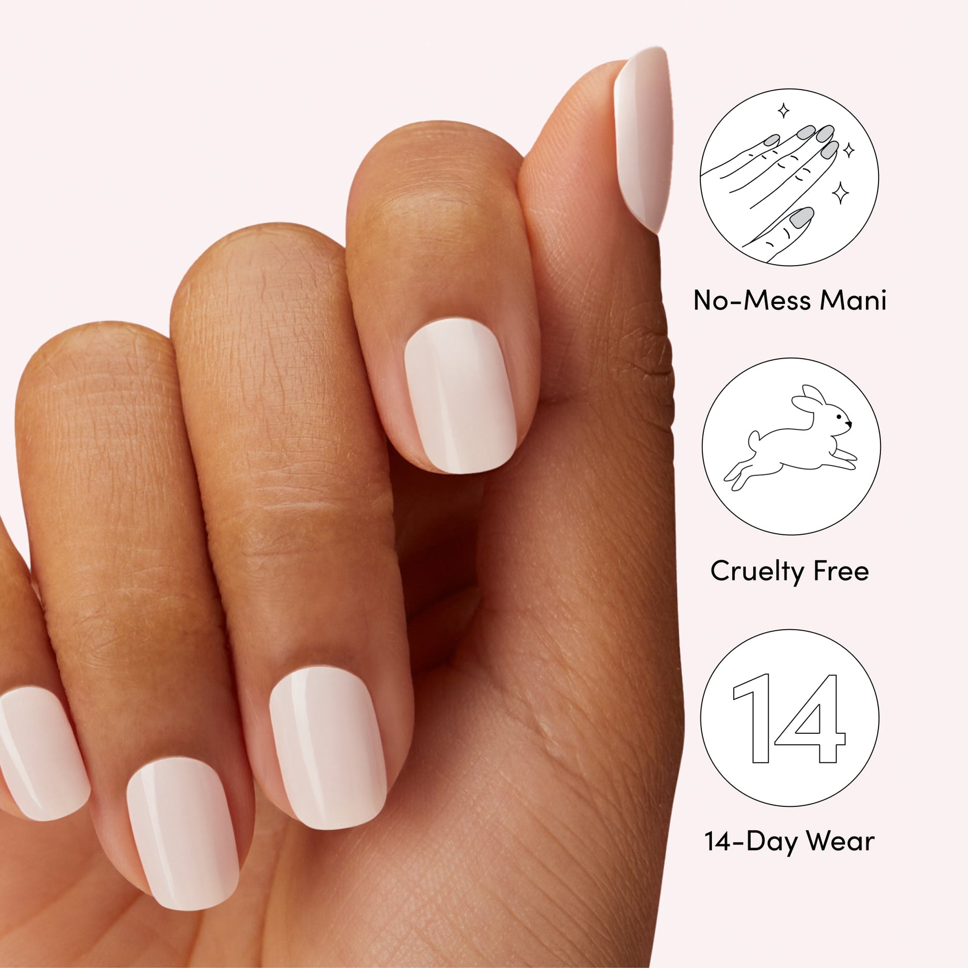 What happens between the sheets, stays between the sheets. Semi-cured nude peach gel nail strips with mega volume and maximum shine. A complete starter kit to achieve the pro-finish and sculpted effect of a salon gel manicure—at home & with ease.
