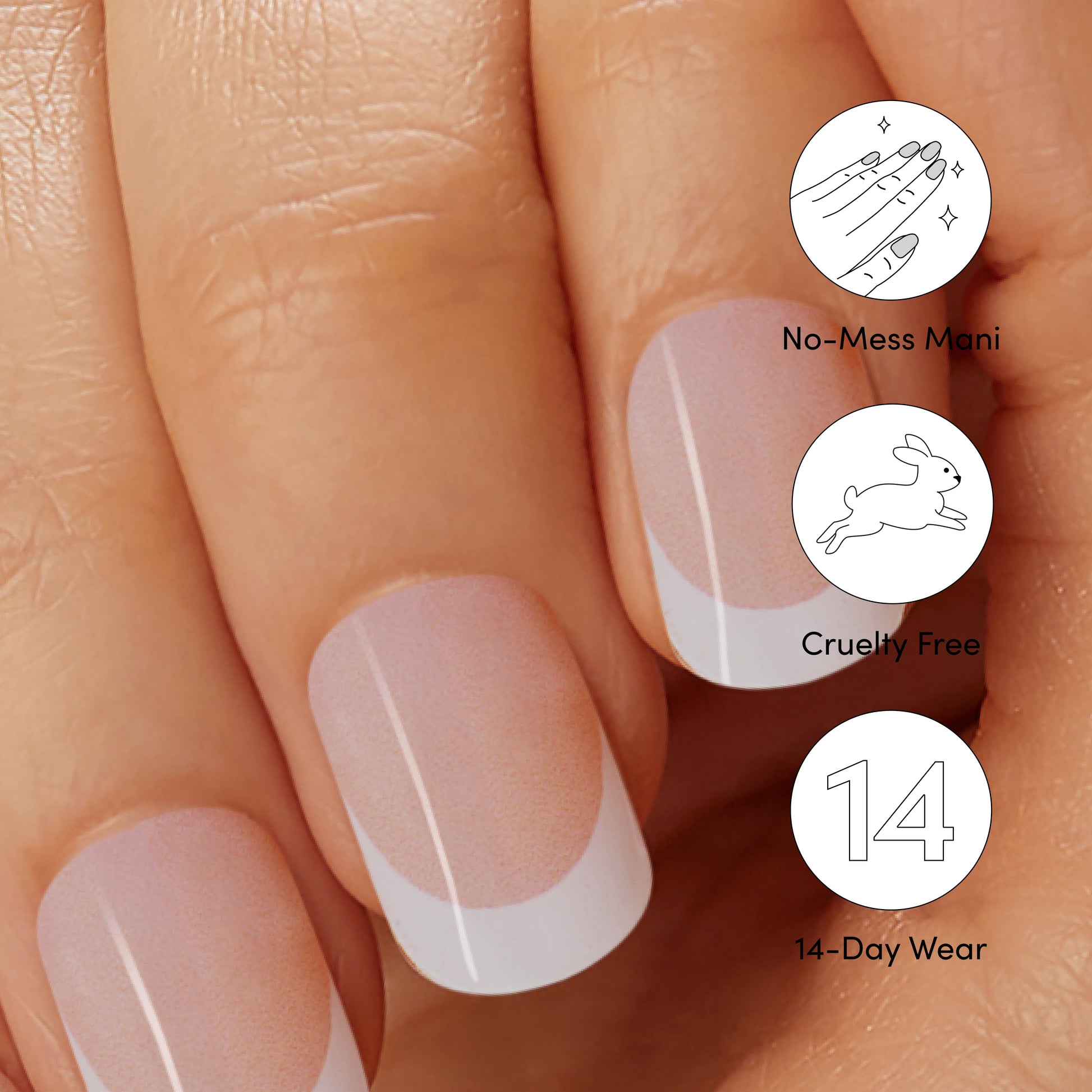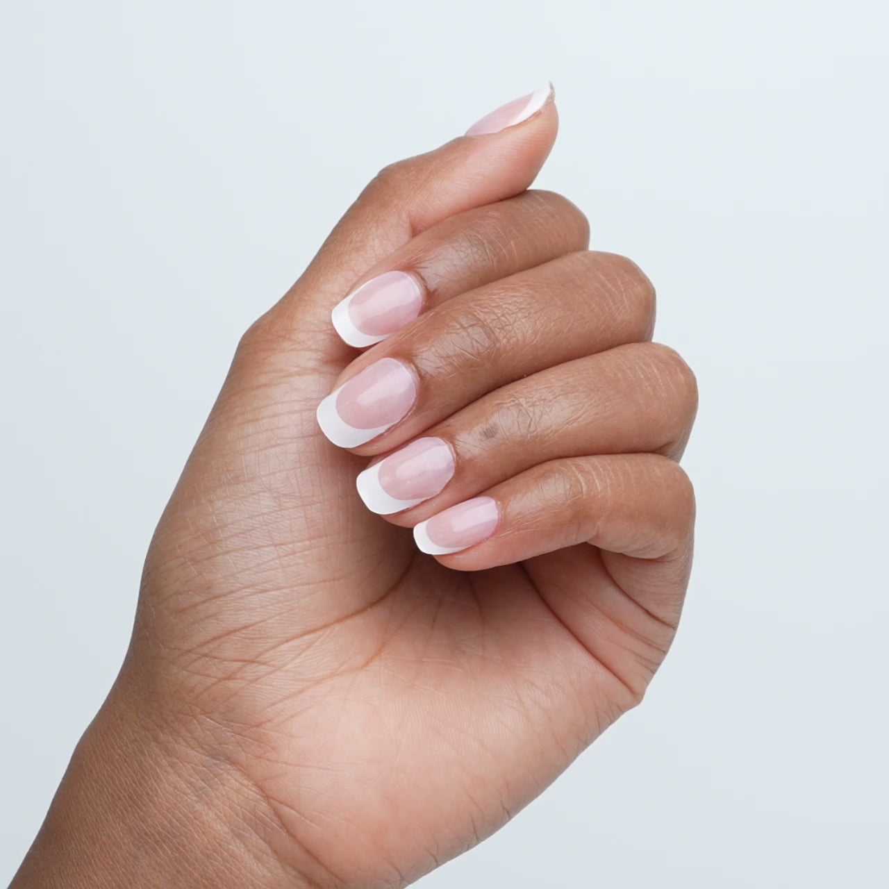 Show 'em off. Semi-cured nude pink gel nail strips featuring white french tips with mega volume and maximum shine.