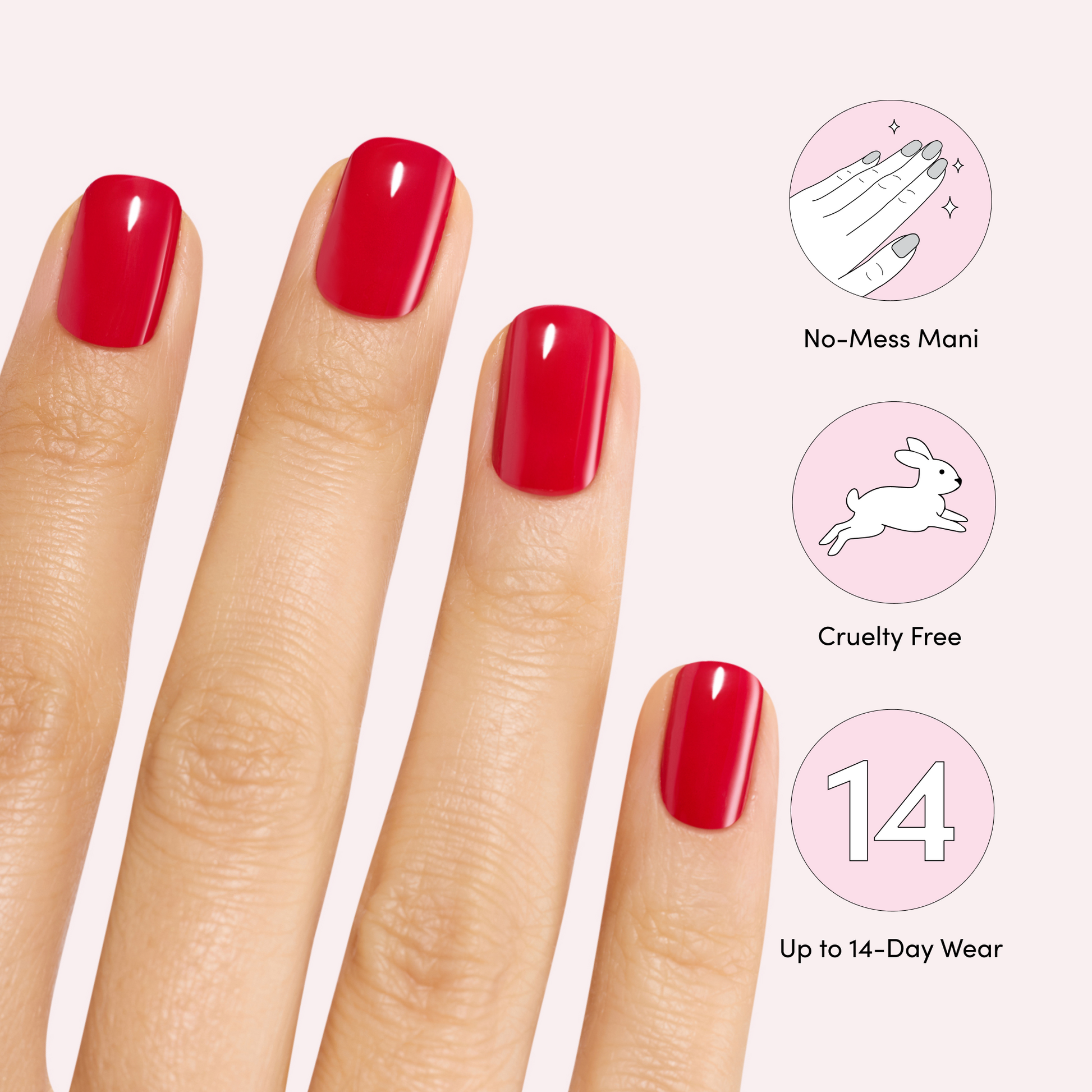 Do I have your attention? True red gel nail strips with a glossy, high-shine finish.