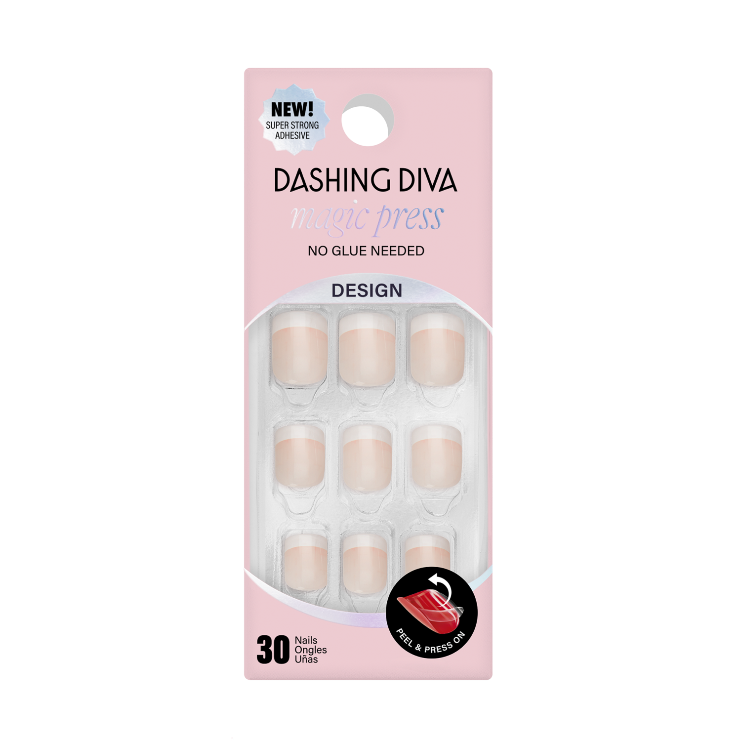 Semi-sheer nude press-on gel nails with classic white french tips.