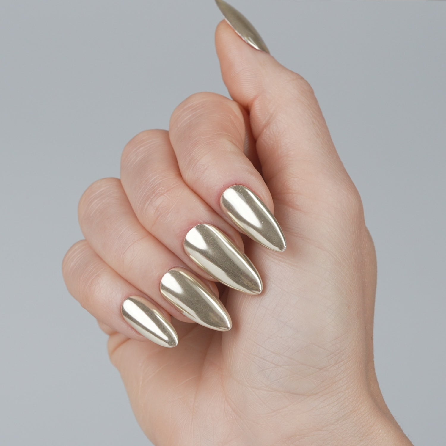 A premium-quality chrome powder made with fine pigments that instantly transforms any color you apply it to. Must be sealed with One Gel Top Coat or any traditional gel topcoat.