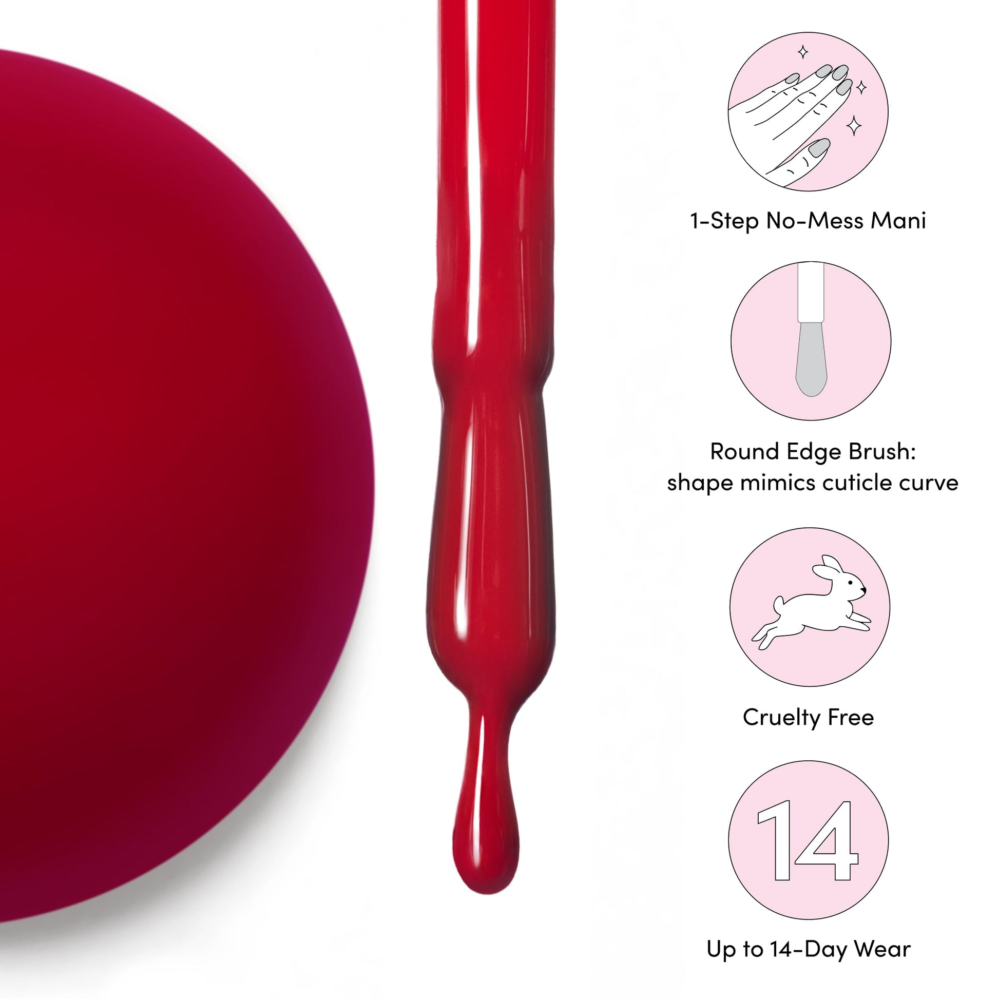 Do I have your attention? A rich 1-step solid red gel nail polish that delivers a flawless all-in-one base, color, and topcoat for a salon gel shine that lasts up to 14 days. Easily removes with our One Gel Magic Off Remover Kit, sold separately.
