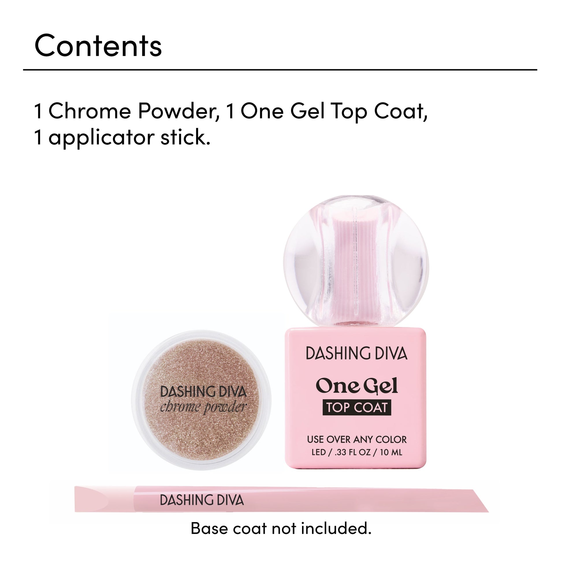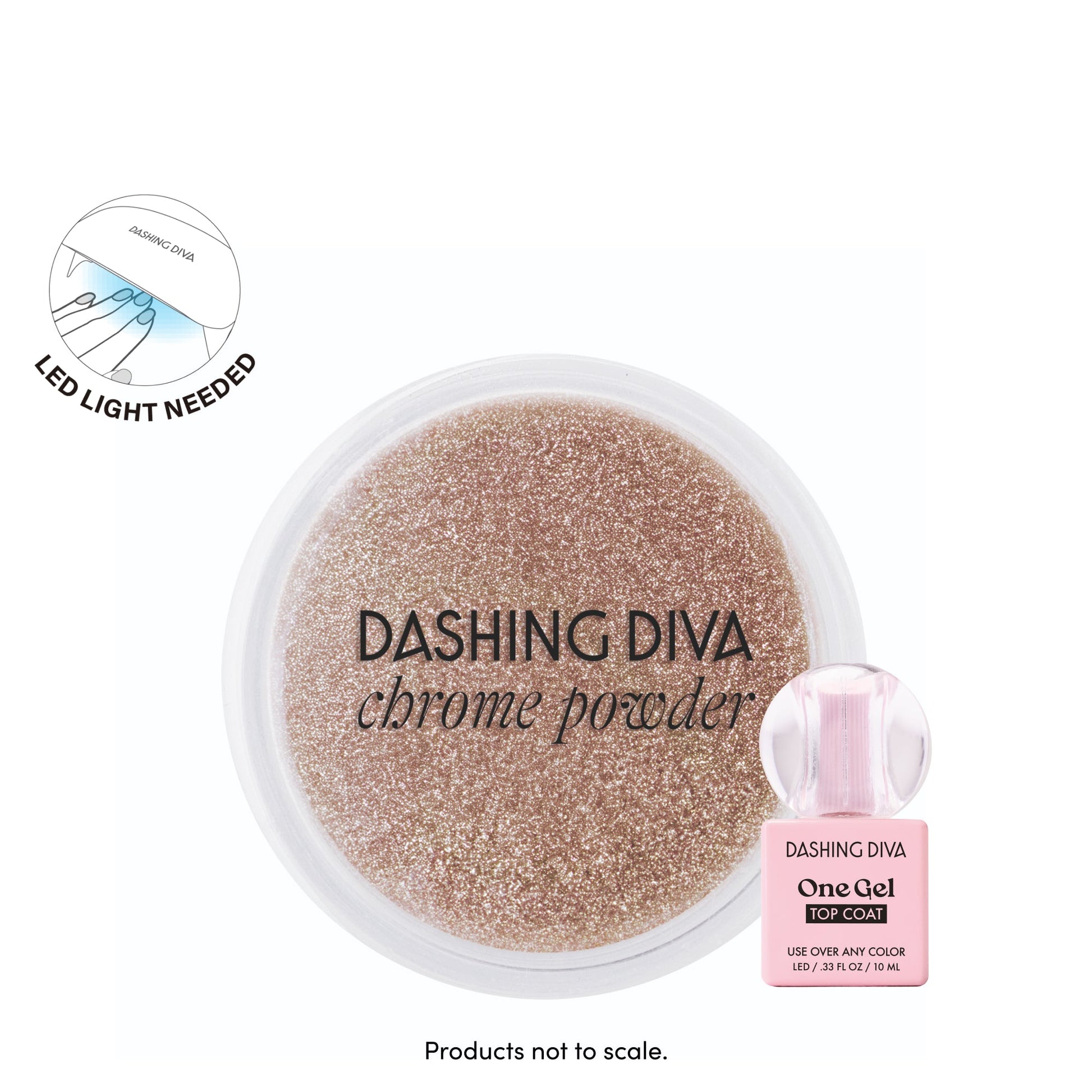 A premium-quality chrome powder made with fine pigments that instantly transforms any color you apply it to. Must be sealed with One Gel Top Coat or any traditional gel topcoat.